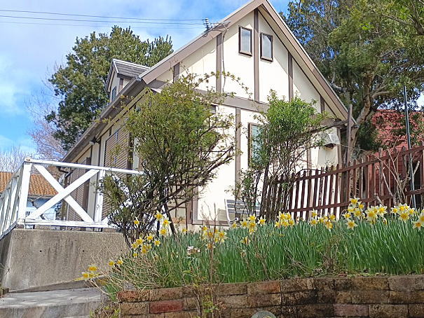 太平洋を望む大型別荘地の高台に位置する外国製の建物。